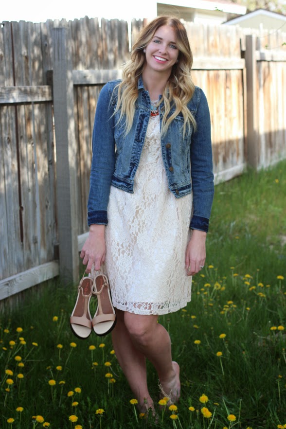 Well, I actually partnered with Online Shoes a while back to style these cute summer wedges! I decided to pair them with my favorite lace dress and a basic denim jacket. White lace dresses just scream summer to me and I love wearing them! Anyways, me and a few other bloggers did our best job styling these wedges and we are in a little contest. It would mean the world to me if you took a second to vote for me! You literally just click on the link, vote, and then you are automatically entered to win your own pair of shoes from Online Shoes! They have some pretty cute styles and you can start picking which style you would choose if you won!